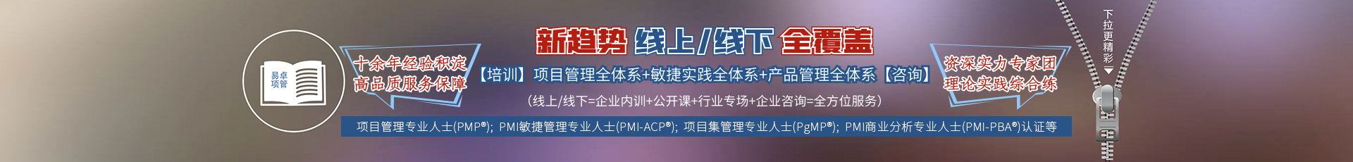 上海易卓公司[易卓智庫],憑借項目化管理專業品牌優勢,經過多年積淀,不僅打造了一支精英運營團隊,更是整合塑 造了涵蓋項目管理、項目化管理、PMP?、PMI-ACP?、PgMP?系列認證和贏在職場系列的培訓咨詢導師教練專家團隊, 從而形成了上海易卓公司業務平臺可持續發展的專業智庫,繼而奠定了易卓所在行業的踐行者服務品牌地位!